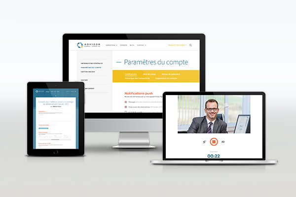 Ces couleurs conviennent parfaitement à Advizor vu qu’il s’agit d’une plateforme collaborative, mais qui doit tout de même avoir un apport confiance avec le service proposé.
