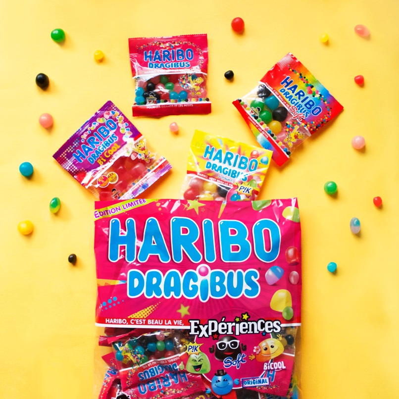 Lors de mon alternance au sein de l’agence FCINQ, une de mes missions était de réaliser des visuels social media pour la marque Haribo Dragibus.