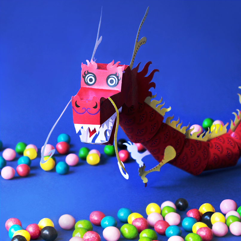 Pour chaque visuel, je réfléchis à la composition de l’image, je crée certains éléments (exemples : le dragon en papier ou les lapins), je prends la photo et je retouche l’image.